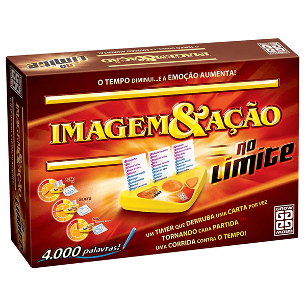 Nova versão do Imagem & Ação vai testar os limites dos jogadores! Dessa vez os jogadores poderão passar até 3 palavras para a sua equipe! Mas atenção: o tempo continua o mesmo! As palavras são sorteadas, você escolhe em que ordem vai desenhar para a sua equipe, coloca as cartas em um timer especial. O timer vai marcar o tempo que você tem para passar cada palavra para sua equipe: o tempo passa, as cartas caem! Por isso, use toda a sua criatividade, mas seja rápido! Imagem & Ação - No Limite traz 4.000 novas palavras e expressões.